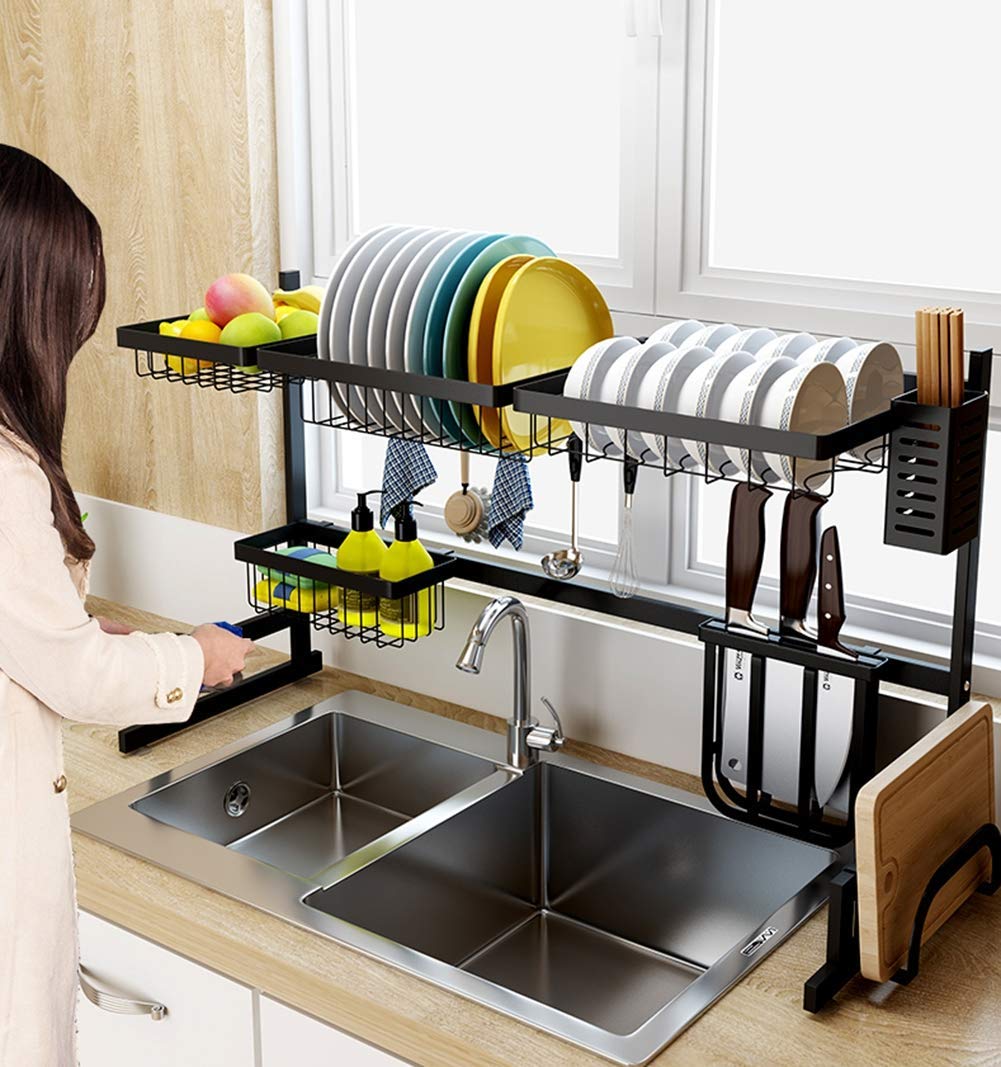 Black 85cm Kitchen Sink Drainer Organizer Stainless Steel Dish Drying Rack Buy Dish Drying Rack Dish Rack Kitchen Organizer Product On Aluminum Pergola Alunotec - 1× dish rack, 1× bowl rack, 1× knife holder, 1× fruit & vegetable basket, 1×chopping board/pot cover holder, 1 x square basket/detergent holder, 1 x the max load capacity of this dish rack is up to 100 lbs.