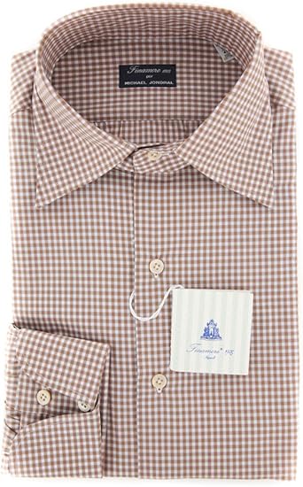 Finamore Napoli Brown Checkered Button Down Spread Collar Cotton Slim Fit Dress Shirt Size Large 16 At Amazon Men S Clothing Store - A great fitting shirt is gathered in all the right places to give you a smart look, a defined silhouette, and the confidence that comes from knowing you are impeccably dressed.